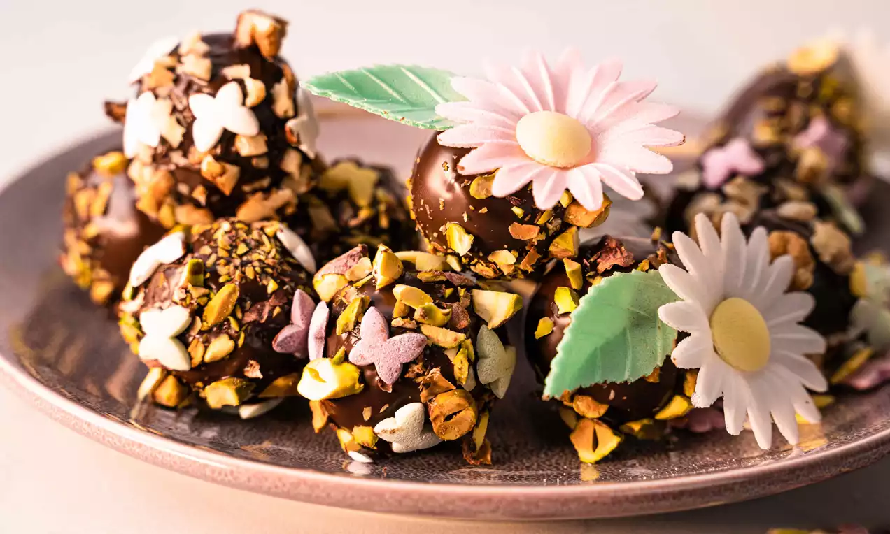 Se desprinde hârtia de copt, apoi prăjitura se fărâmițează într-un vas de mixare. Se adaugă sucul de portocale şi se amestecă cu mixerul cu paletele de batere până ce se obține o masă omogenă. Din această compoziție se formează bile de mărimea unor nuci care se înfig în țepușele de lemn.
