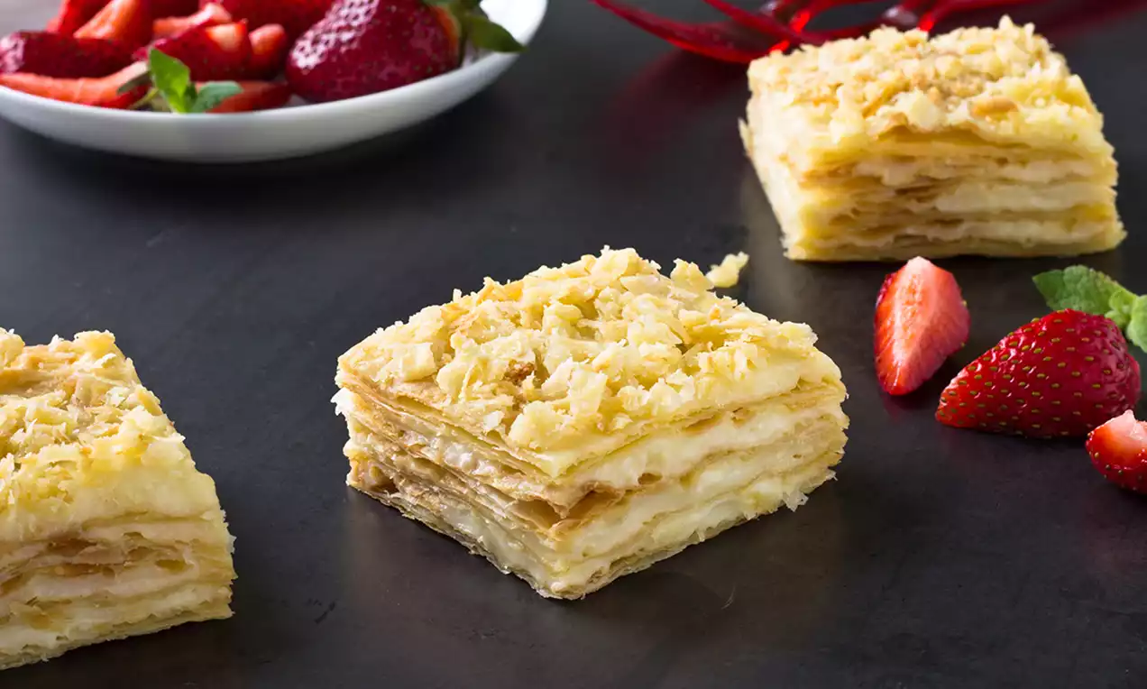 Restul de zahăr și gălbenușurile se amestecă într-un vas până se dizolvă zahărul, apoi se adaugă 200 de lapte și făină, treptat.